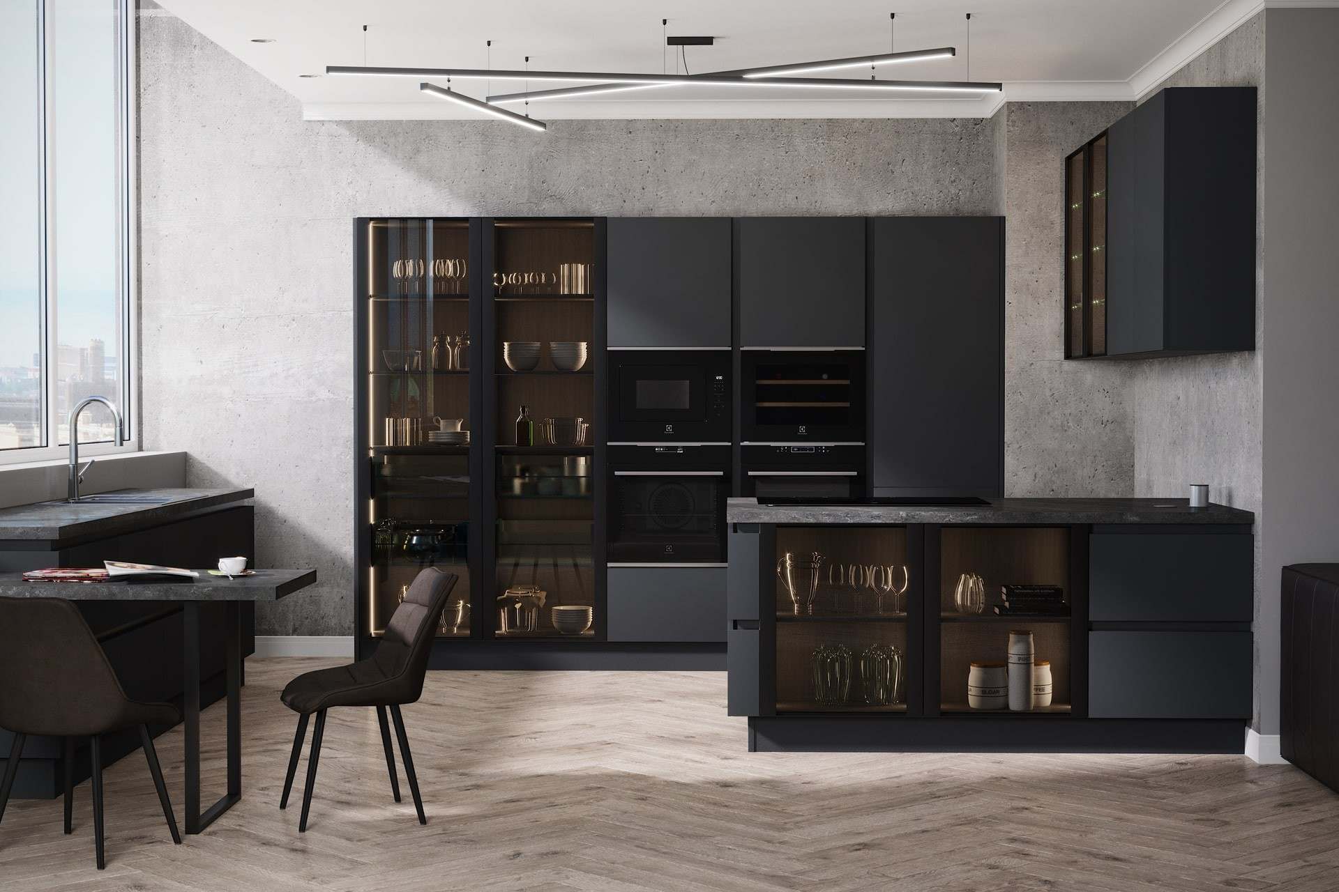 Дизайнеры сходятся во мнении, что если нужна роскошь, шик и драма, то черная кухня подойдет идеально. Она помогает создать контраст, зрительно углубляет пространство, делая его многогранным. Кухня черного цвета, выполненная из технологичных материалов и покрытая эмалью, пластиком, каменным шпоном или ламинатом, сохранит свой первоначальный облик на долгие годы. Цвет немаркий — премиальный внешний вид легко поддерживать, а сохранять блеск и отталкивать пыль поможет антистатический спрей.