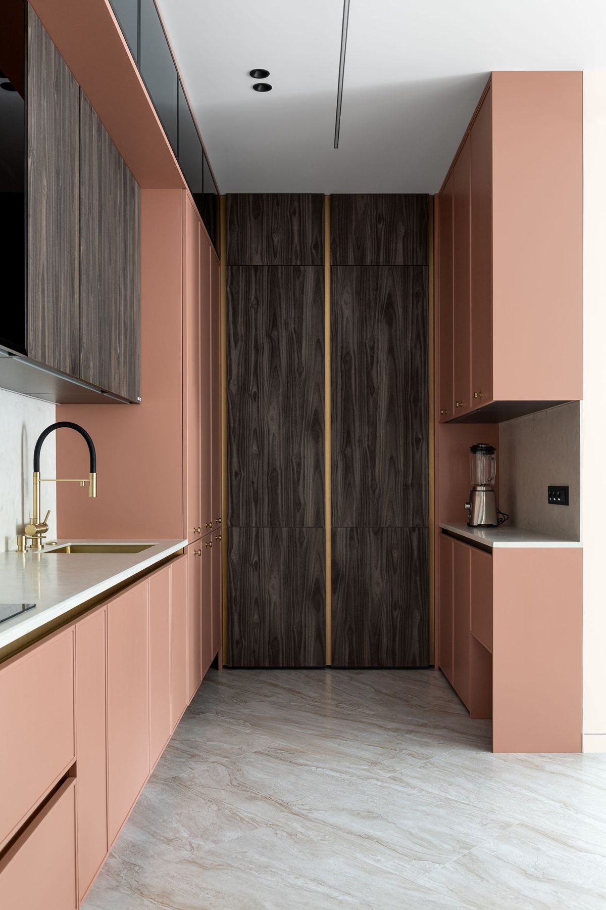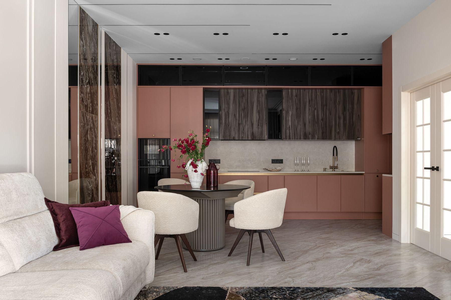 Современная кухня в терракотово-коралловом цвете